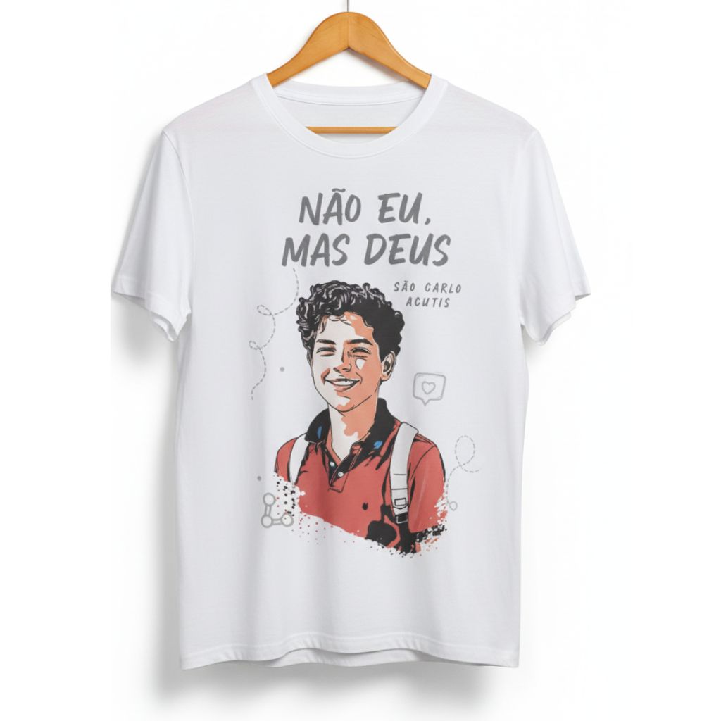 A Camiseta Infantil São Carlo Acutis “Não Eu, Mas Deus” é perfeita para inspirar fé nas crianças com o exemplo do santo da geração digital. Confortável, moderna e cheia de significado, transmite a mensagem de que toda glória pertence a Deus.