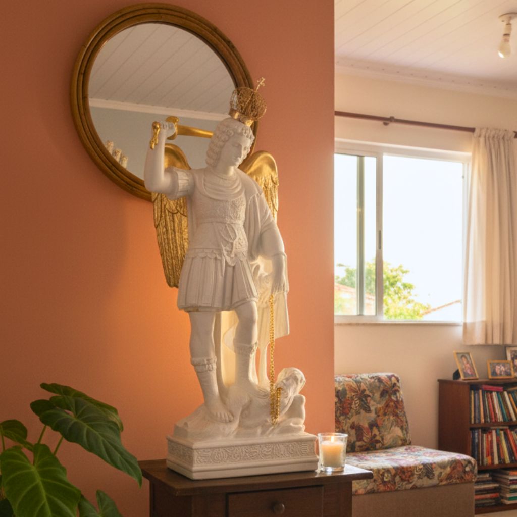 Com 1 metro de altura, esta imagem é ideal para paróquias, capelas ou ambientes de devoção maiores, permitindo que todos admirem os detalhes e sentir a presença inspiradora do arcanjo. Confeccionada com acabamento de alta qualidade, ela transmite imponência e devoção, tornando-se um ponto central de oração e inspiração.