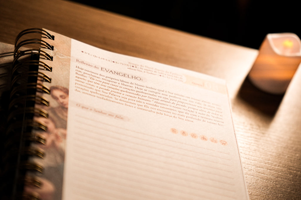 Mais do que uma agenda, é um companheiro de fé. Com o auxílio da Lectio Divina, cada página convida você a anotar inspirações, pedidos e agradecimentos, tornando-se um registro precioso da sua caminhada espiritual ao longo do ano.
